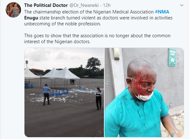 Report further said that the NMA Chairman of the state,Dr Ike Okwesili and some members of the excecutive were not spared by the thugs as they were severely beaten.