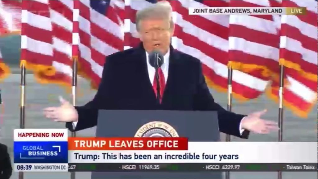 Trump who failed to acknowledge his successor,Joe Biden in his farewell speech, left for his permanent home, Mar-a- Lago, Palm Beach, Florida