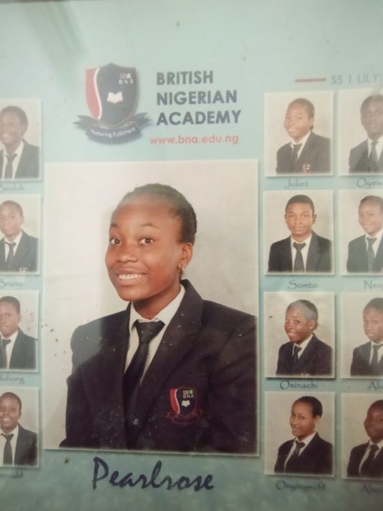 Pearlrose attended British Nigerian Academy,Prince and Princess, Duboyi District, Federal Capital Territory FCT,Abuja and on successful completion in 2015, gained admission into WVU for further studies.