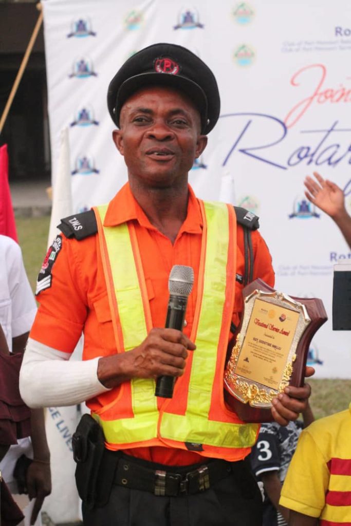 A Police traffic warden attached to Elekahia/Stadium road junction in Port Harcourt, Sergeant Godstime Nwuju has been honored by the Rotary Club of Port Harcourt Rebisi Kingdom and Rotary club of Port Harcourt Spring Gardens for his outstanding performance in traffic management.