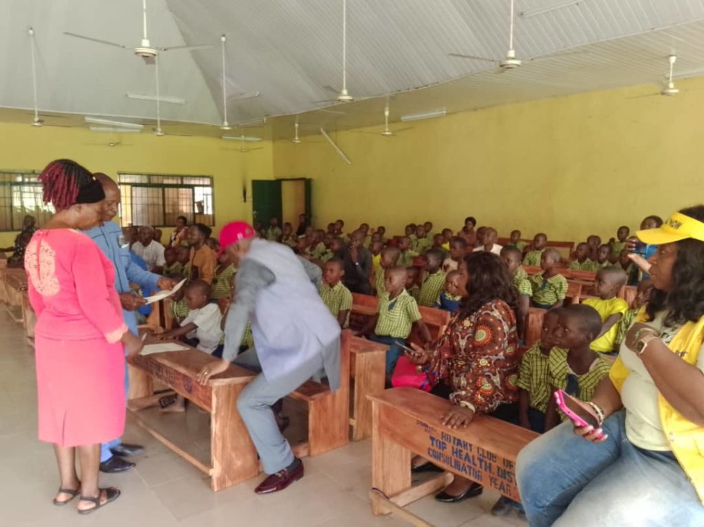 The Rotary Club of Port Harcourt Top Health has donated fifty one desks for sitting of three hundred students in the Community Primary School Arukwo, Abua Central, in Abua Odual Local Government Area, to improve on the educational facility in that area.
