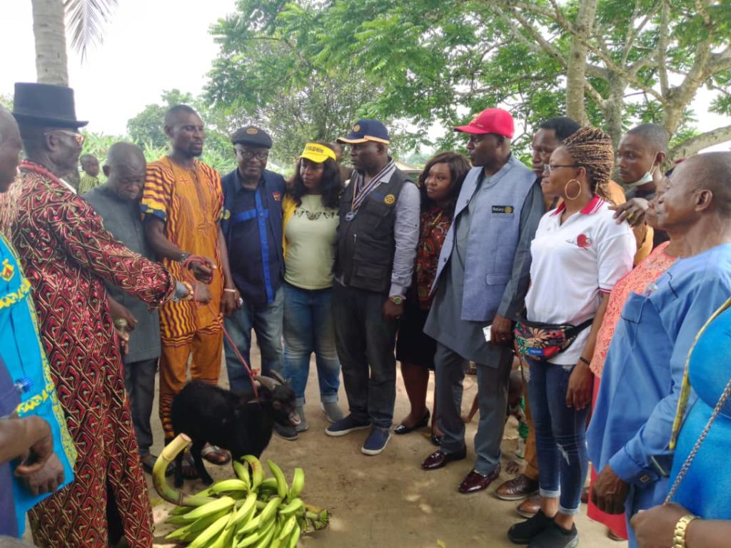 Our correspondent also reports that food items like plantain, a live goat, and fruits were given to members of the Rotary Club of Port Harcourt Top Health by elders and chief of the community and the Arukwo students Union, in apprecia tion for the gesture.